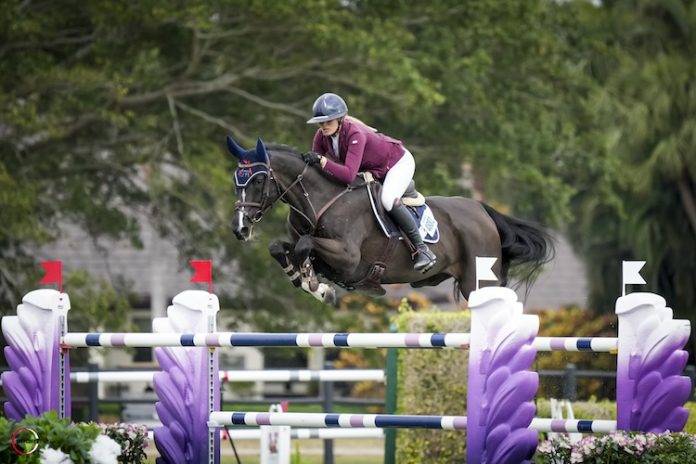 La amazona británica Jessica Mendoza cabalgó directo a la victoria del $32,000 CSI3* Adequan WEF Challenge Cup Round 2, en compañía de la yegua de 12 años In The Air (Air Jordan x Indoctro), en ronda de desempate con 14 jinetes clasificados y siendo su tiempo de 43.43 segundos.